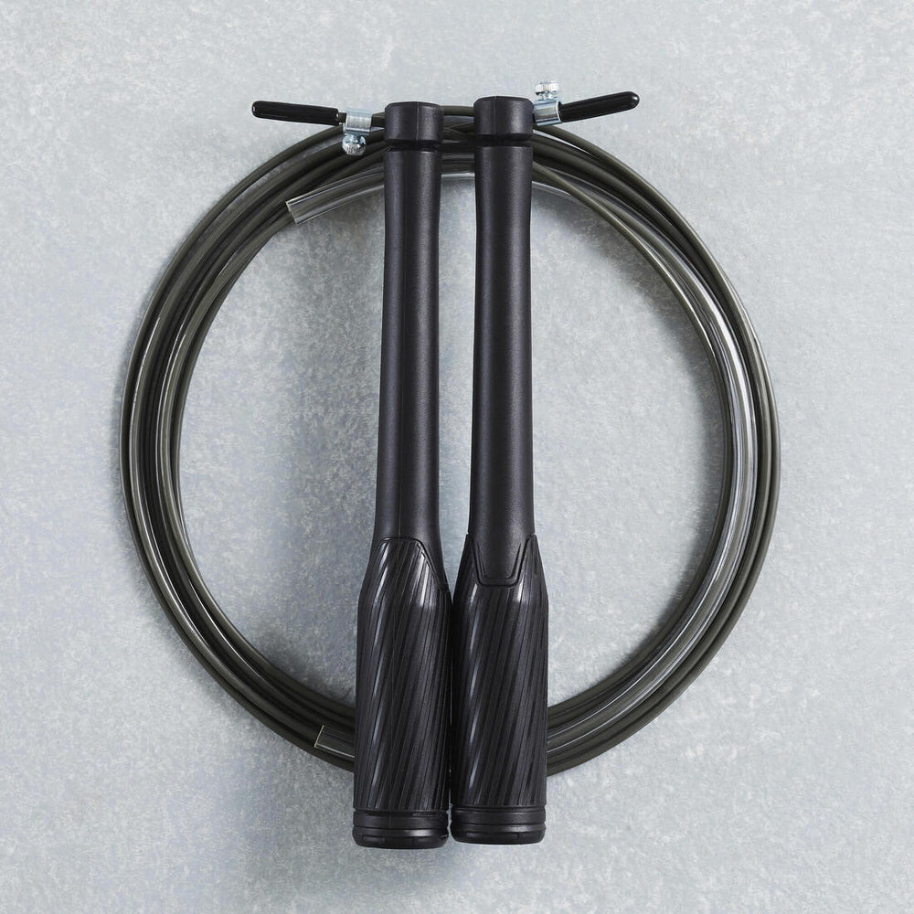 Descubre una multitud de ejercicios con esta comba de velocidad negra con Decathlon Coach.