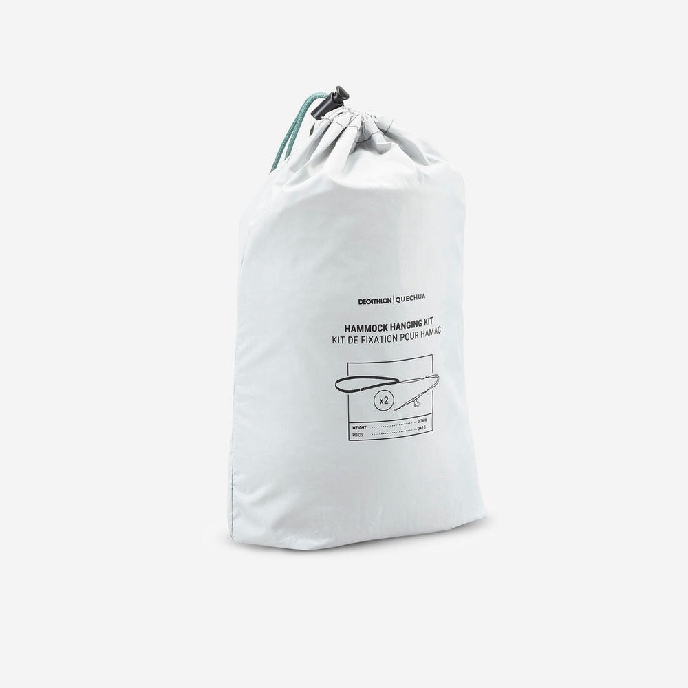 Nuestros diseñadores campistas han concebido este kit de correas con mosquetones para fijar fácil y rápidamente la hamaca.