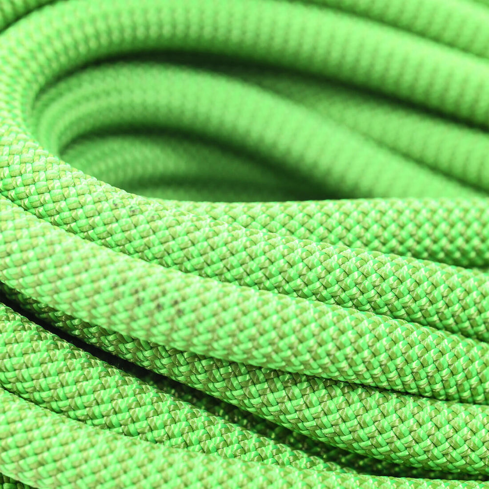 Al envejecer, todas las cuerdas de escalada encogen. Esto varía generalmente entre un 2 y un 5%, pero puede llegar hasta un 10% en función de la humedad, el calor, las caídas, los lavados, etc... Para reducir este efecto, durante la producción prevemos un margen de longitud adicional, pero algunas veces esto no es suficiente. Por ello, recomendamos medir regularmente la cuerda y comprobar que la marca central de la cuerda es correcta.