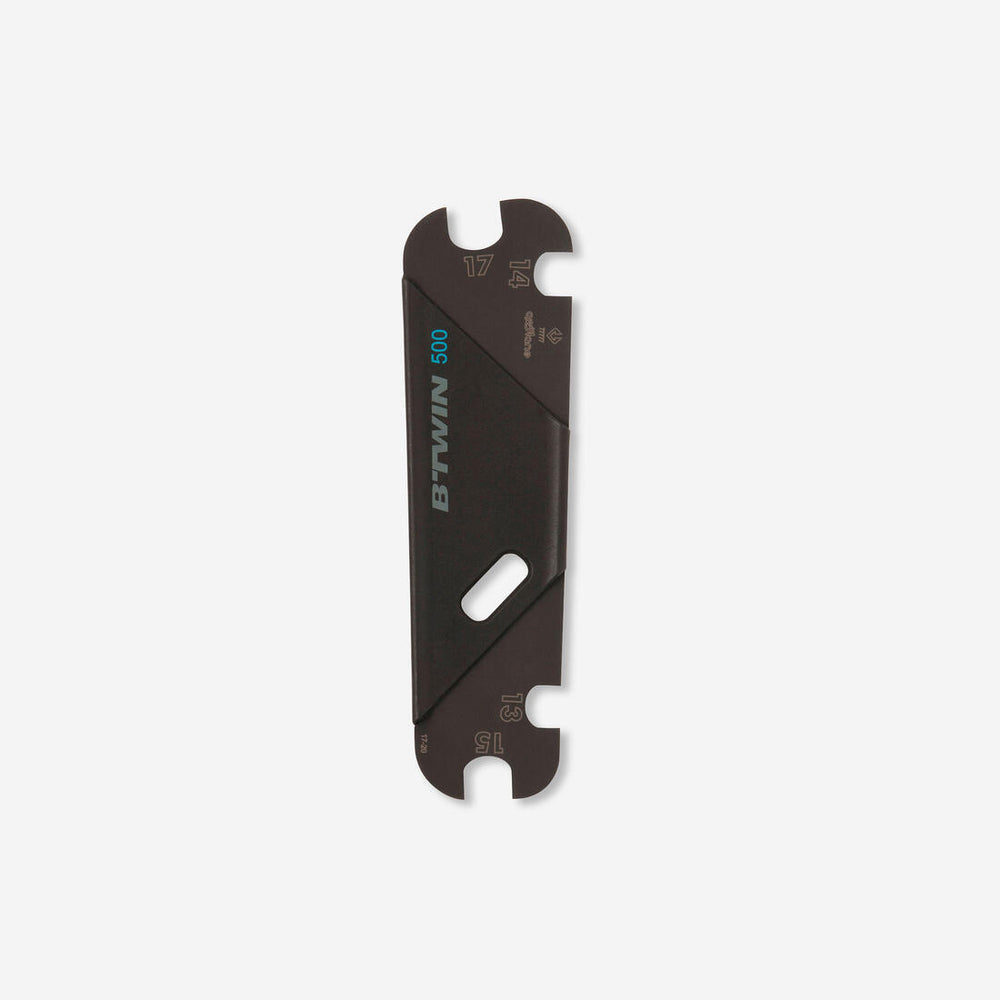 La llave cónica para buje de rueda es una herramienta que se utiliza para ajustar únicamente los conos de los bujes de rueda. Esta llave es más delgada que las llaves normales, por lo que encaja en el espacio estrecho de los conos de buje. Desaconsejamos su uso para otras tuercas. Permite ajustar el juego de los rodamientos para un funcionamiento óptimo.