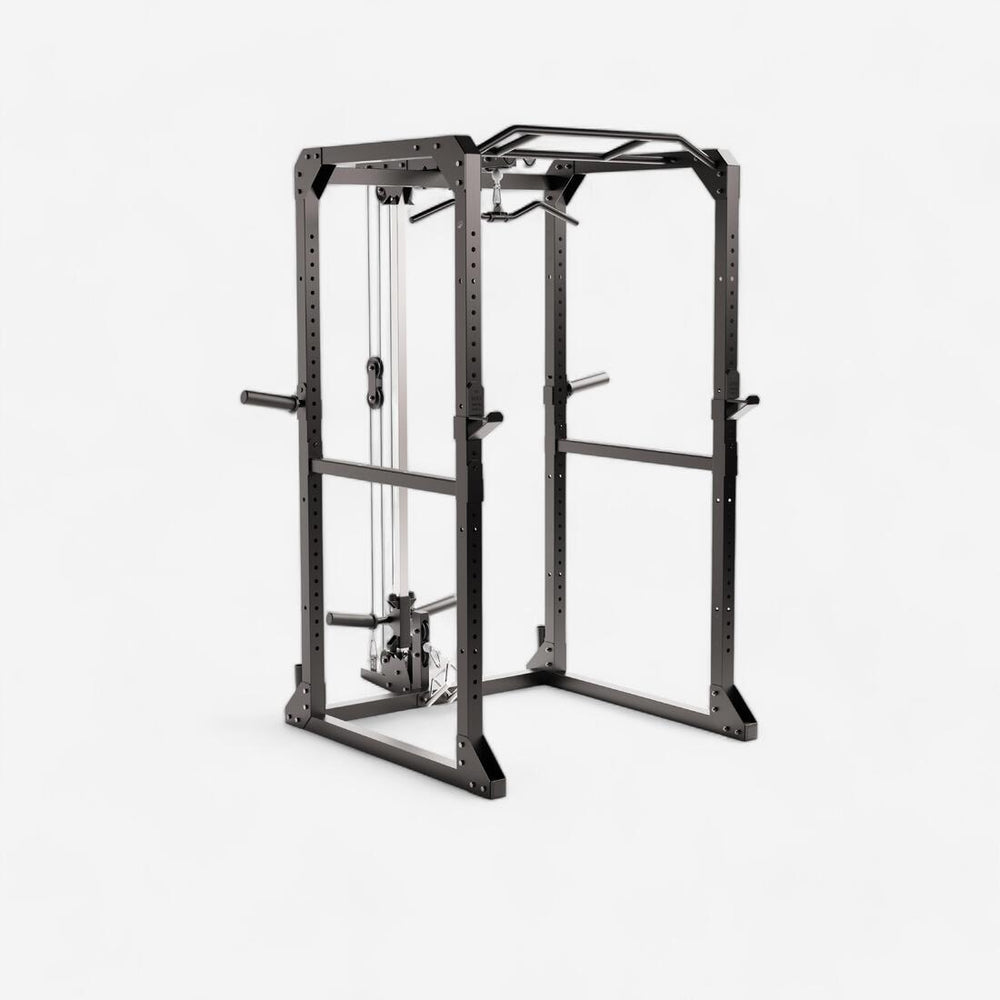 Te presentamos este rack de pesas y sentadillas multifuncional para ejercicios con mancuernas, barra y todo tipo de accesorios de cross training y musculación.