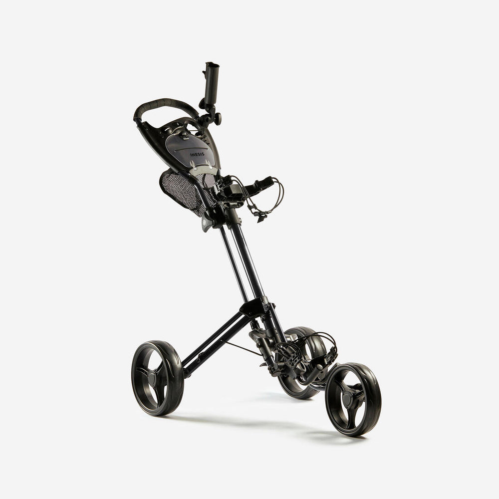 Hemos diseñado este carrito de golf de 3 ruedas para transportar fácilmente la bolsa de golf en los recorridos.