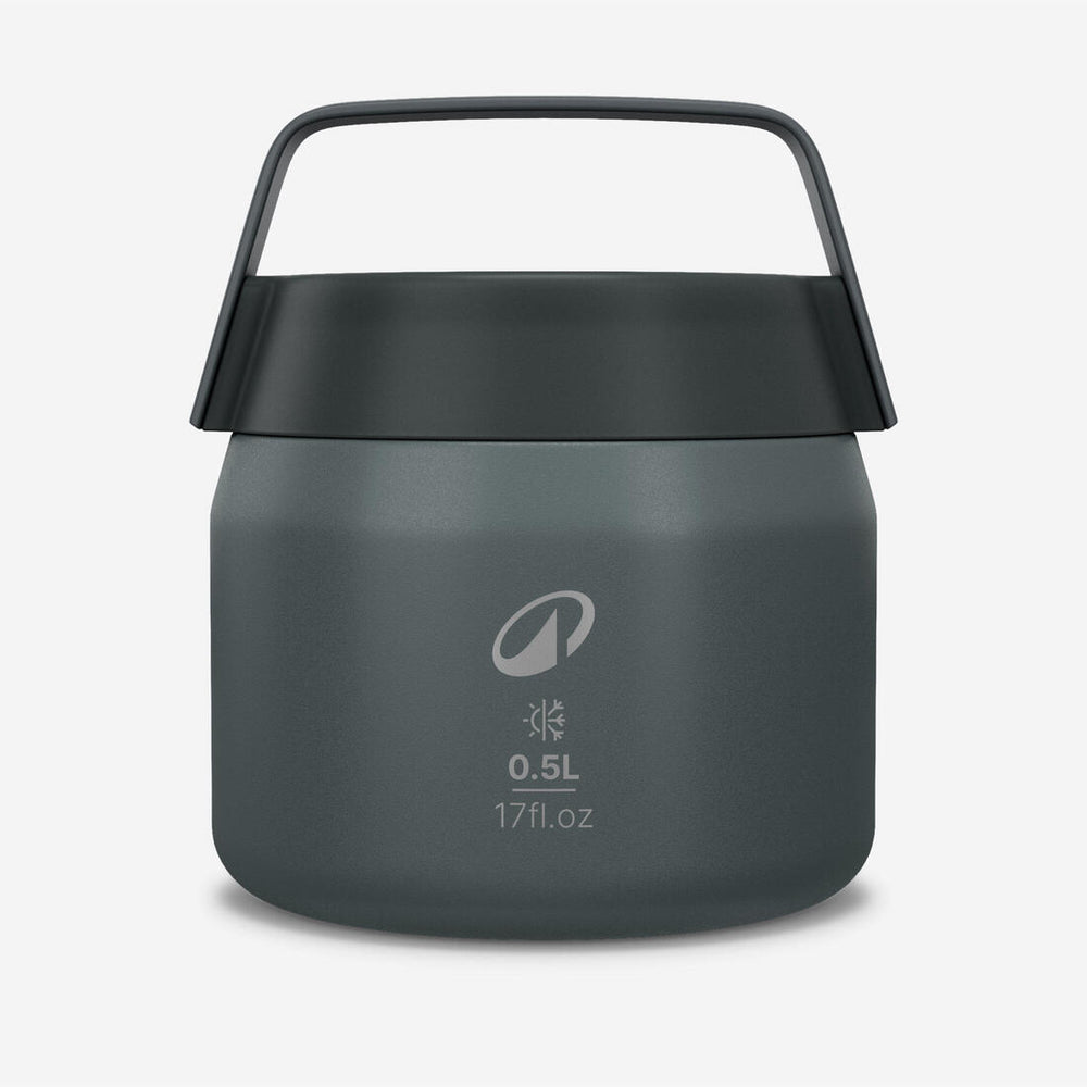 De acero inoxidable de doble pared con vacío de aire para la isotermia. Compacta y ligera con amplia abertura. Práctica con su asa flexible y su tapa enroscable. (0,5 L).