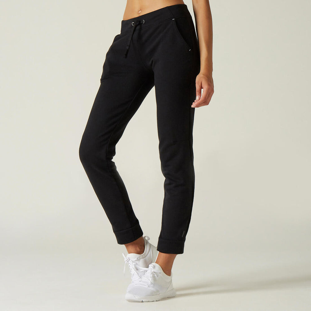 Pantalón jogger fitness corte recto domyos 500 mujer negro
