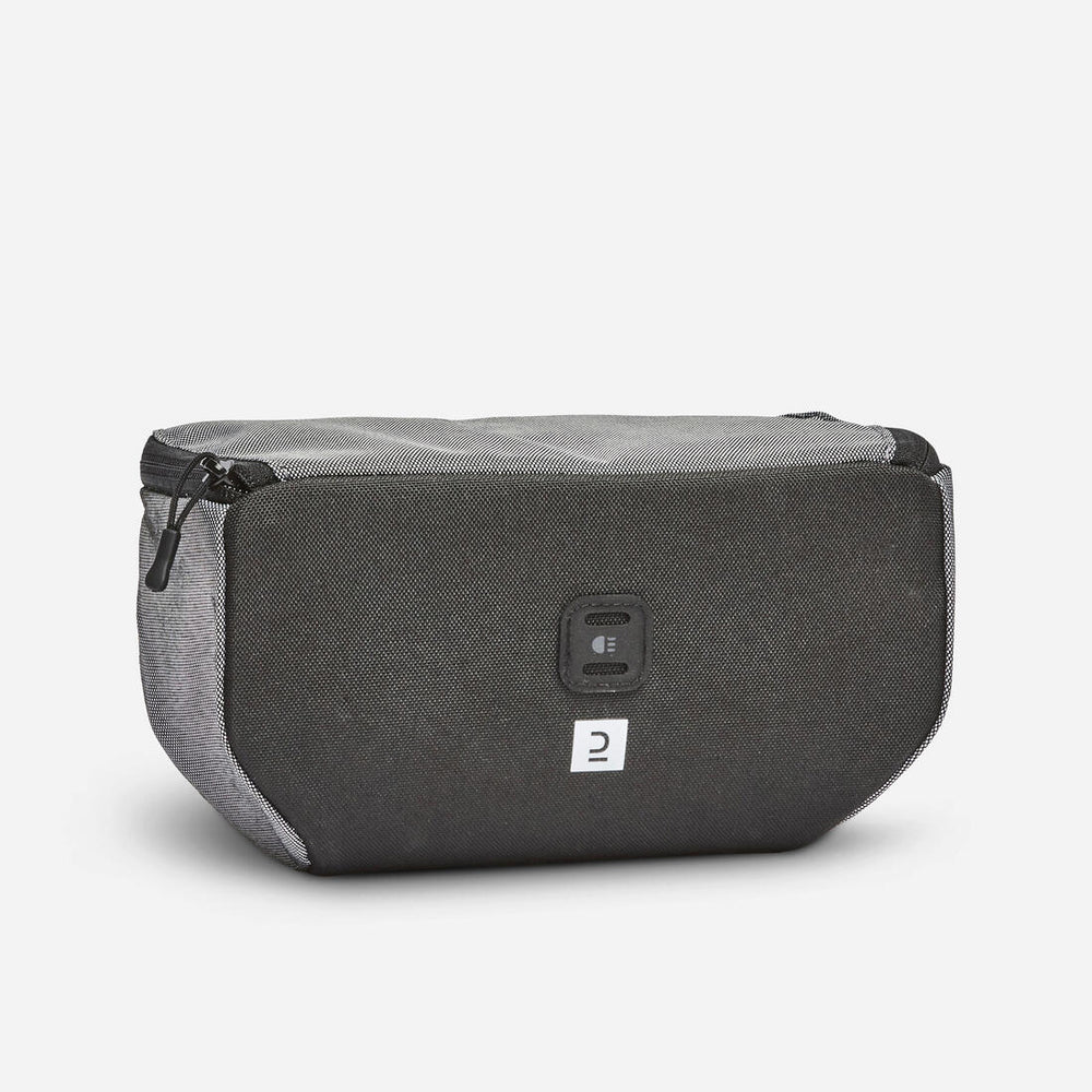 Una bolsa práctica que se fija en todo tipo de manillares. Se accede con facilidad a los objetos personales desde el sillín de la bicicleta.Ideal para las llaves, el portátil, un kit de reparación...