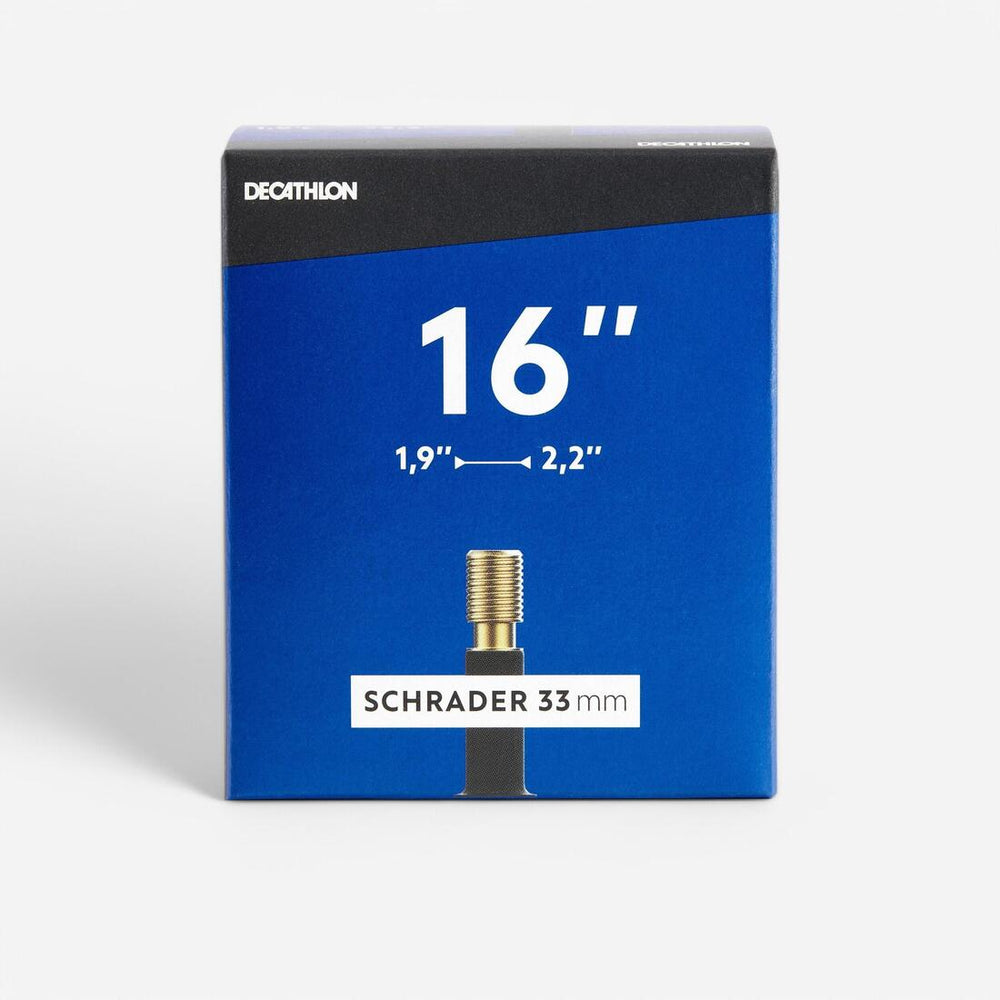 Cámara de aire adecuada para neumáticos de 16 pulgadas de diámetro, sección de 1,90 a 2,20 con válvula Schrader 33 mm.
