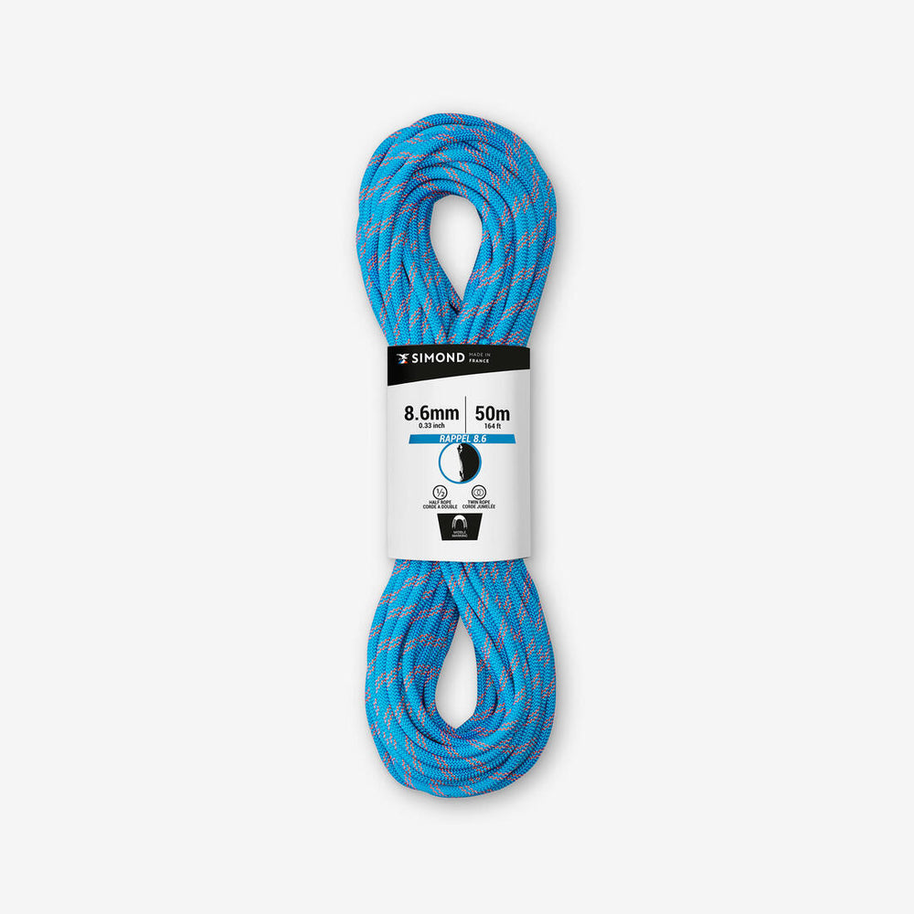 Esta cuerda en doble está diseñada para grandes vías rocosas. Su diámetro de 8,6 mm lo hace muy resistente a la abrasión.