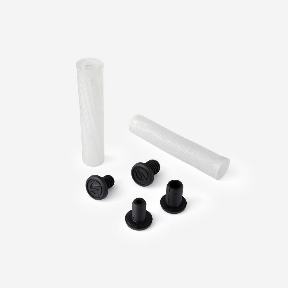 Puños freestyle compatibles con manillares de 22,2 mm de diámetro. Miden 160 mm. Los puños se venden con 2 tipos de tope para adaptarse al máximo al patinete