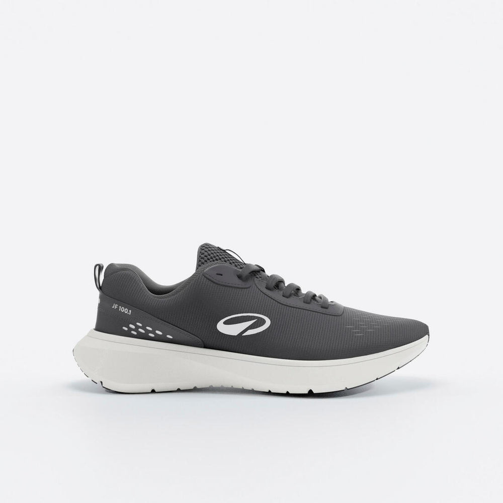 Iníciate en el running con las Jogflow 100.1. Su espuma EVA y ranuras de flexión garantizan una pisada natural, ligera y protegida, ideal para tus sesiones de jogging de hasta 30 minutos.